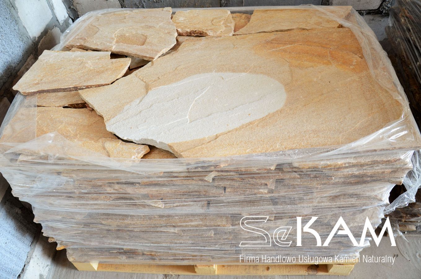 Należy mieć na uwadze fakt, że krawędzie tego kamienia są nieregularne, co oznacza ewentualne odpady podczas docinania. Przy takim kamieniu potrzebny jest zapas 10-15 % materiału.